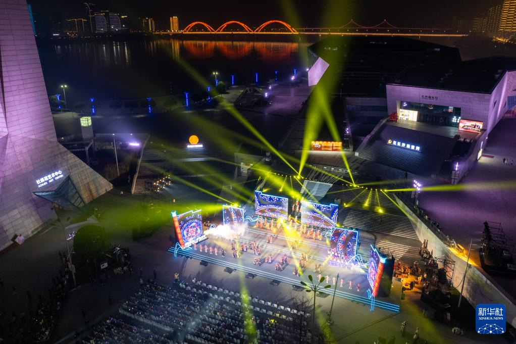 12月9日拍摄的2025年湖南“欢乐潇湘”优秀群众文艺作品展演活动现场(无人机照片)。新华社记者 陈思汗 摄