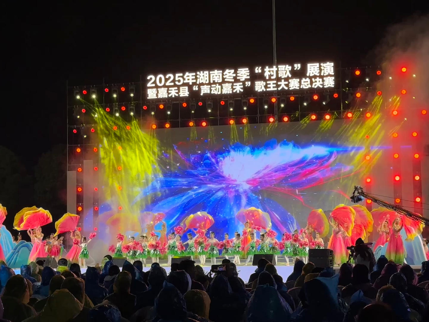 冬夜嘉禾,歌声飞扬。12月23日晚,嘉禾县双拥广场灯火璀璨、人头攒动,2025年湖南冬季“村歌”展演暨嘉禾县“声动嘉禾”歌王大赛总决赛举行。