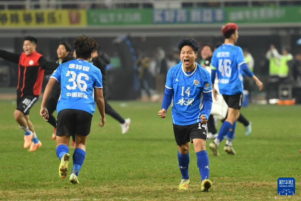 当日,在湖南长沙贺龙体育场举行的2025湖南省足球联赛(“湘超”)决赛中,永州队1比0战胜常德队,夺得冠军。