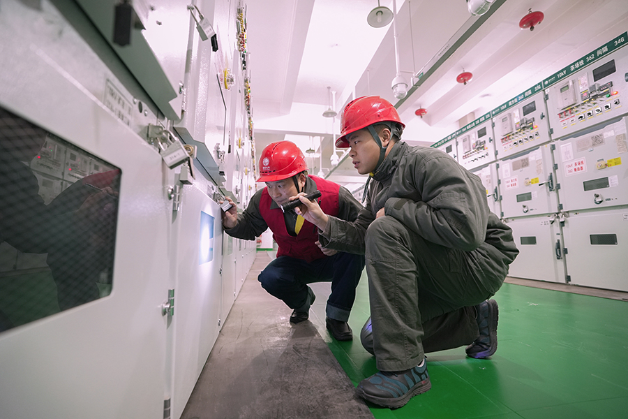 2025年12月31日,国网长沙供电公司工作人员在110千伏桃花变10千伏开关柜开展专业化巡视工作。新华网发 刘熠杨摄