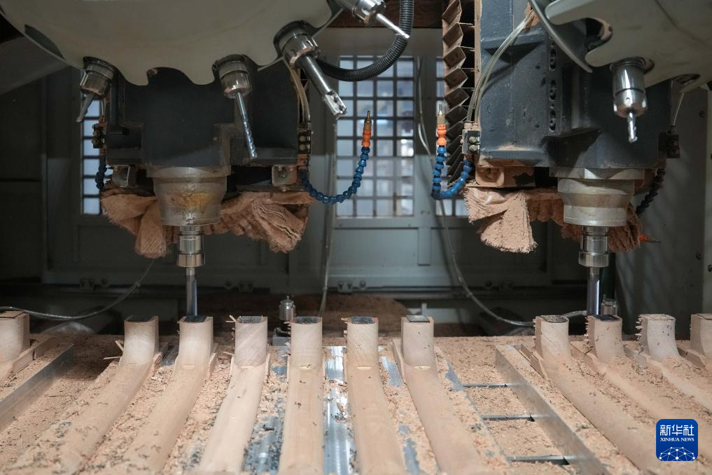 1月7日,湖南省卡玛乐器制造有限公司的智能化设备在生产吉他。新华社记者 薛宇舸 摄