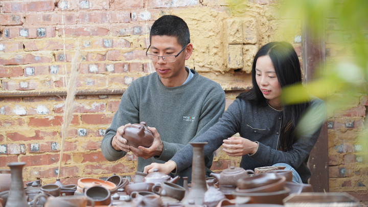 作为古村落的“新”村民,夫妇俩去学了陶艺,并把陶艺发展成“新”事业。他们亲手搭建柴窑,将彝族传统图腾通过手工雕刻融入茶具、摆件,让柴烧陶艺既有匠心温度,又有文化辨识度。