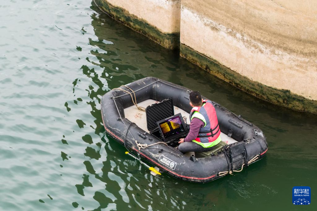1月29日,在沪昆高铁湘江特大桥下,铁路工人操作水下机器人检测河床情况。新华社记者 陈思汗 摄pagebreak