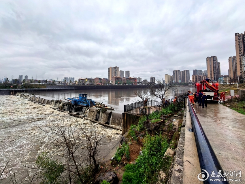 26日11时17分,娄底市消防救援局指挥中心接到报警,称娄星区涟滨街道中梁湾田御江府附近,一艘打捞船被困于涟水河水坝中央,船上有两人。涟滨特勤站立即出动3车18人,携带专业水域救援装备赶赴现场施救。