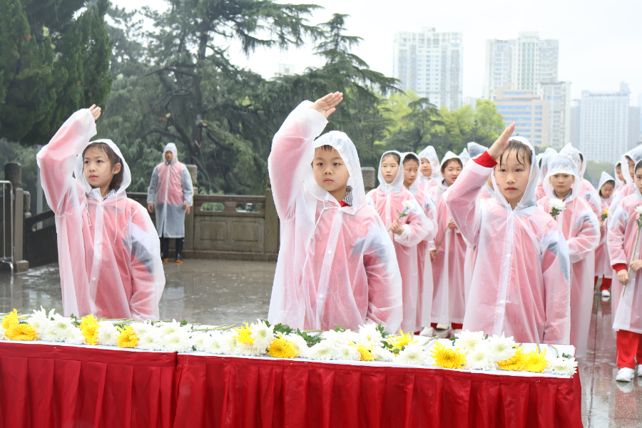 学生代表瞻仰烈士纪念塔(开福区委宣传部供图)