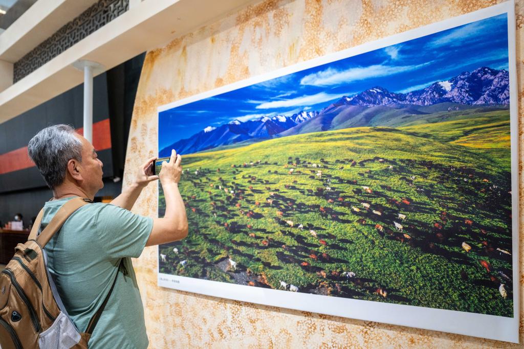 4月9日,观众在湖南省博物馆参观“我的吐鲁番”摄影展时拍照。新华社记者 陈思汗 摄pagebreak